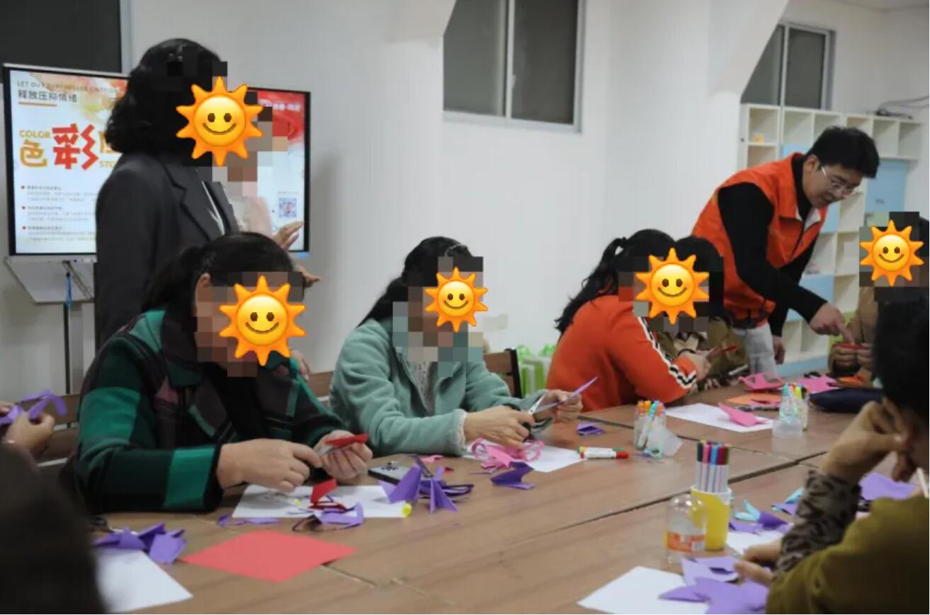 在绘画疗愈、色彩时间轴等活动中,工作人员耐心陪伴引导,帮助精康群众释放负面情绪、调适心理状态。情绪低落的小吴逐渐愿意用笔表达内心,社交恐惧的张大姐放下戒备,还主动成为活动中的“暖心小帮手”,在互动中重拾自信与笑容。