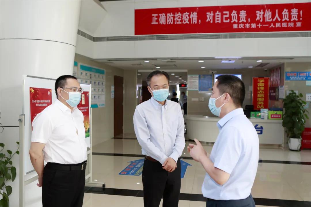 在市第十一人民医院,陈金山来到门诊大厅、门诊预检分诊处、临床心理中心,详细询问门诊预检分诊筛查、门诊可疑患者转诊、职工日常检测管理、陪护家属健康管理等情况。