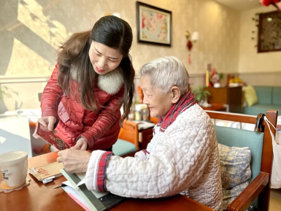 养老不仅是身体的照料,更是心灵的滋养。工作人员偶然发现,余瑶玉老人对旧照片、革命往事格外有感触,便常常陪着老人翻阅老相册,静静聆听她讲述革命年代的峥嵘岁月,在回忆中慰藉老人的心灵、传承红色精神。