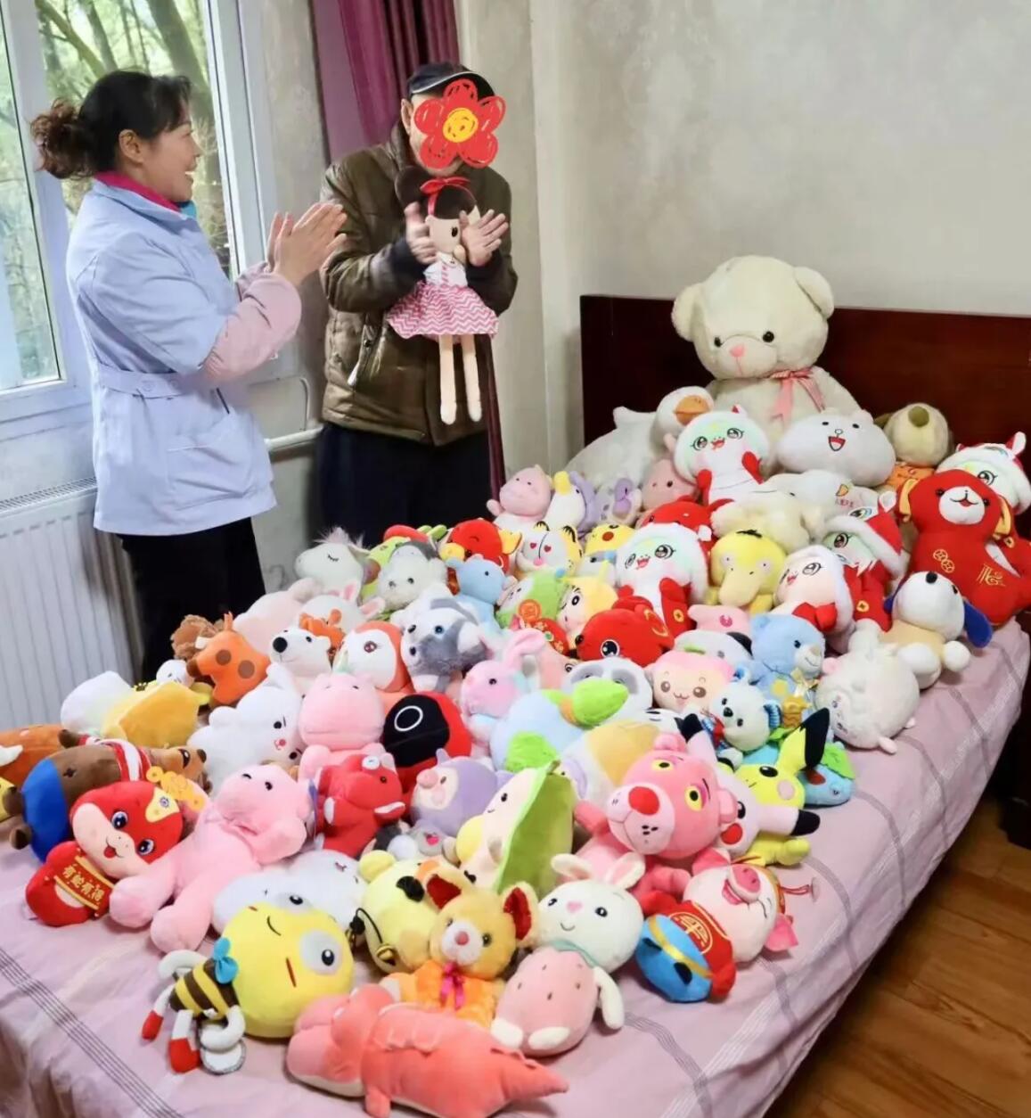 去年底,福利院的工作人员带着老人们秋游,走进城区感受城市发展活力。途经街边一家玩具门店,林林的脚步忽然顿住了,他的目光被商店里的毛绒玩偶牢牢锁住,像一个渴望糖果的孩子,小心翼翼,又满心向往。那份不掺一丝杂质的期盼,让同行的工作人员悄悄把这份心愿,记在了心底。