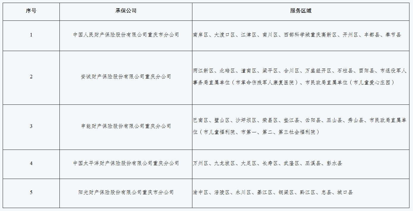 服务范围是什么?民政惠民济困保项目通过政府采购公开招标,确定2026—2027年度5家承保公司分区负责,具体服务区域见表格。
