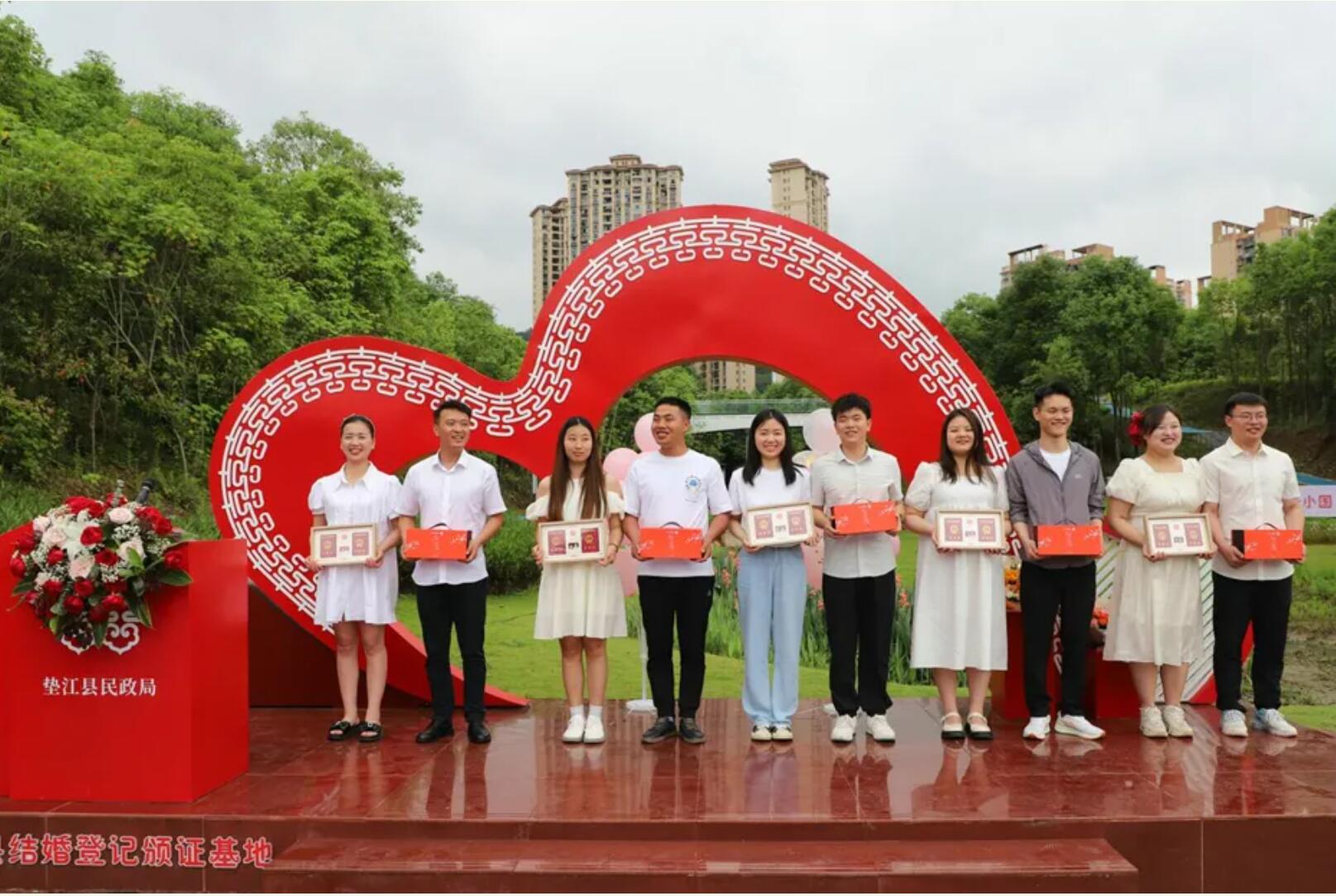近年来,垫江县民政局婚姻登记处以全市婚俗试点改革工作为契机,积极构建新型婚育文化,持续规范婚姻登记管理。累计举办婚恋交友活动9场,婚姻家庭辅导活动12场,婚俗改革宣传活动12场,户外集体特色颁证活动3场,服务4000余人次。印发《垫江县婚事新办喜事简办倡议书》2万余份,录制“春风满巴渝、文明润垫江”社会风气提升行动婚事简办倡议书音频,在城市社区循环播放,覆盖10万余人次。连续举办四届垫江县集体婚礼活动,始终用民政的温暖守护爱情的初心。