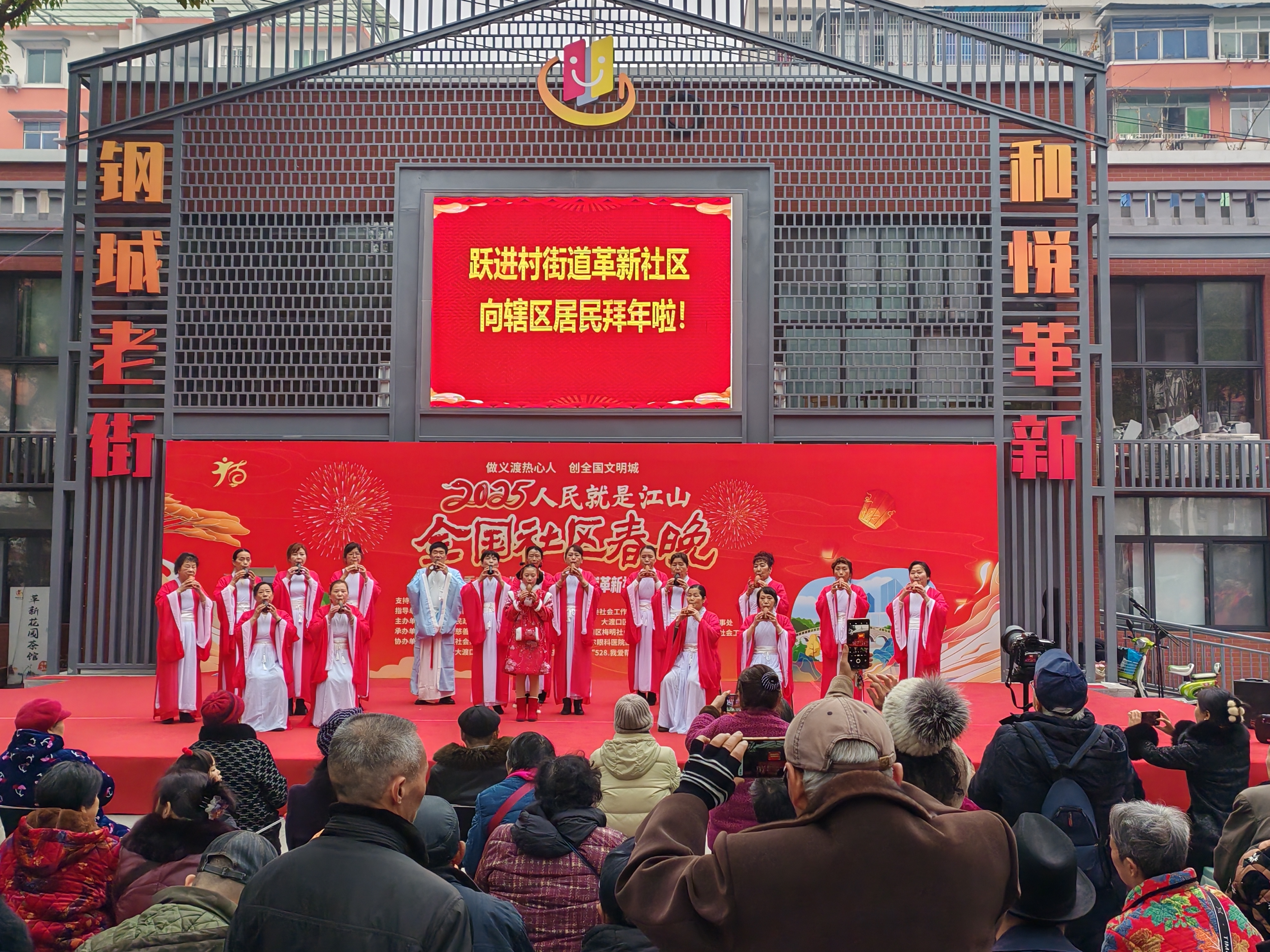 1月22日,大渡口区2025全国社区春晚——革新社区专场在跃进村街道革新社区康乐文化广场开展。让老百姓成为舞台中央最耀眼的主角,社区居民成为文化盛宴的创造者和享受者。本次活动由大渡口区民政局、辖区部分社会组织及社会单位联合举办。