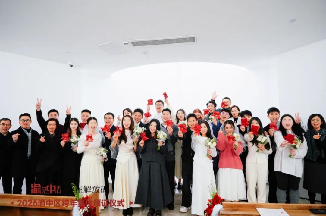 据了解,作为全国首个CBD婚姻登记中心,渝中解放碑这个“爱情地标”正越擦越亮。用仪式感留住人,用服务温暖人,让跨年不只是时间的跨越,更是幸福生活的起点。
