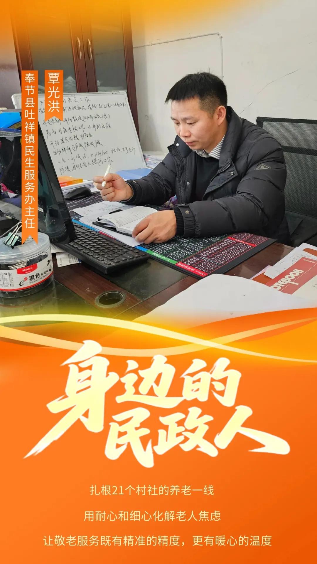 在奉节县吐祥镇的山间小道上,总能看到一个奔波的身影。六年来,他扎根21个村社的养老一线,把脚步印在养老服务的最前沿;他用“走心摸排的细心、贴心服务的暖心、破局创新的匠心”,破解一个又一个老年群体的急难愁盼。他就是2025年全国“敬老爱老助老模范人物”、奉节县吐祥镇民生服务办主任覃光洪,一位被全镇老人亲切称作“贴心人”的基层民政干部。