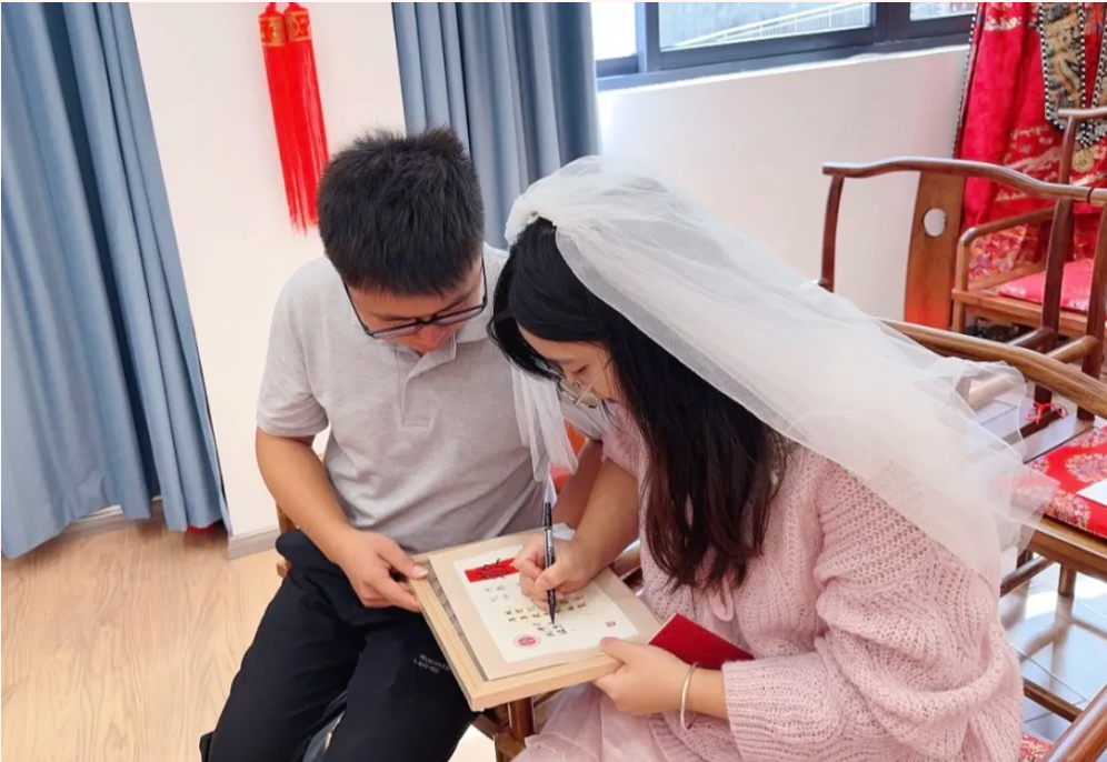 在新婚护航阶段,则聚焦新婚夫妻角色适应与关系融合需求,构建“仪式引导+专业支持+互动体验”的立体化服务框架,常态化开展结婚颁证服务400余次,举办“新婚初启·相依相伴”“爱启新程·携手同行”等新婚辅导沙龙活动,为新人经营好婚姻家庭赋能。