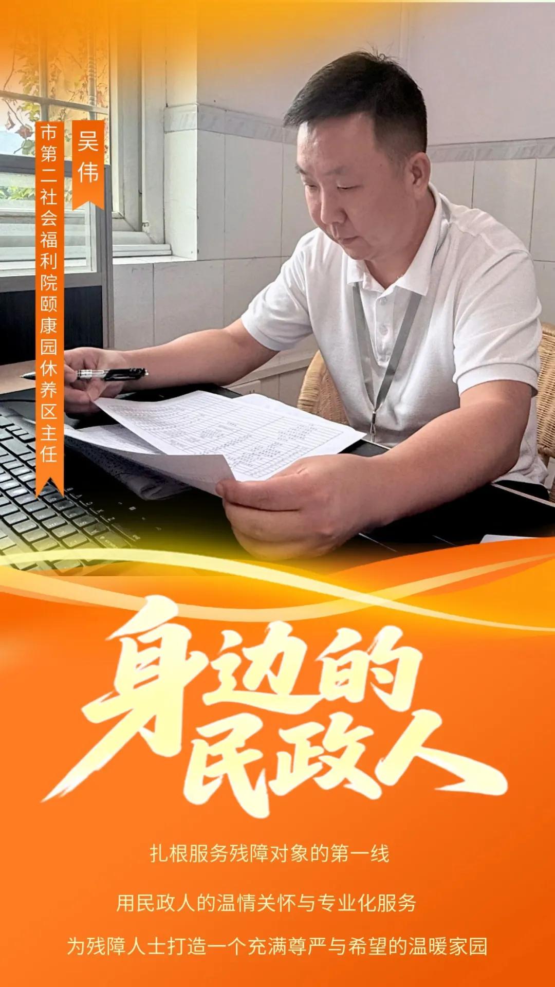 市第二社会福利院颐康园的清晨,总能看见吴伟穿梭楼宇的身影。他步伐稳健,笑容温和,话语亲切,被数百名残障休养人员视为最信赖的“家人”。他就是市第二社会福利院颐康园休养区主任——吴伟。