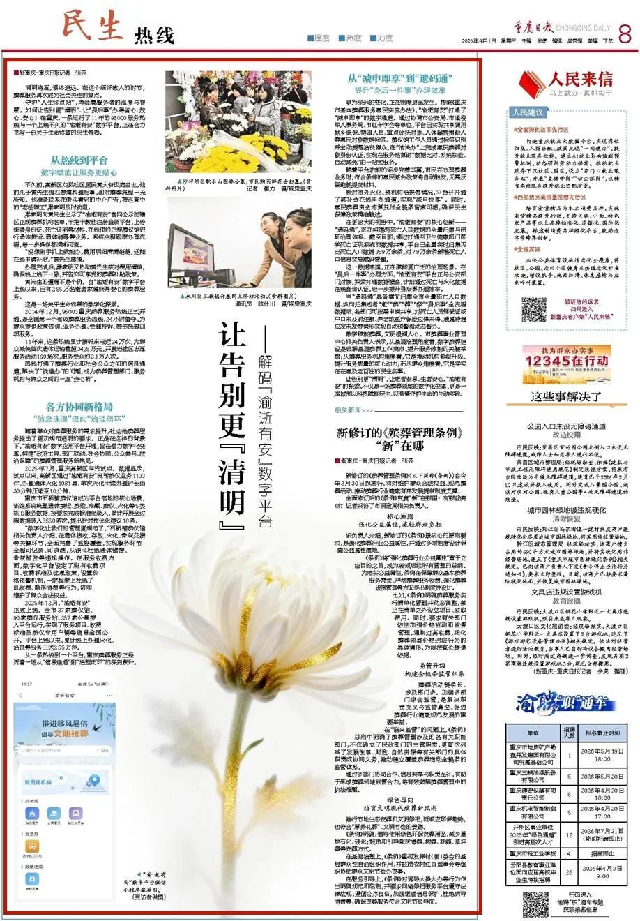 刊发《让告别更“清明”——解码“渝逝有安”数字平台》一文