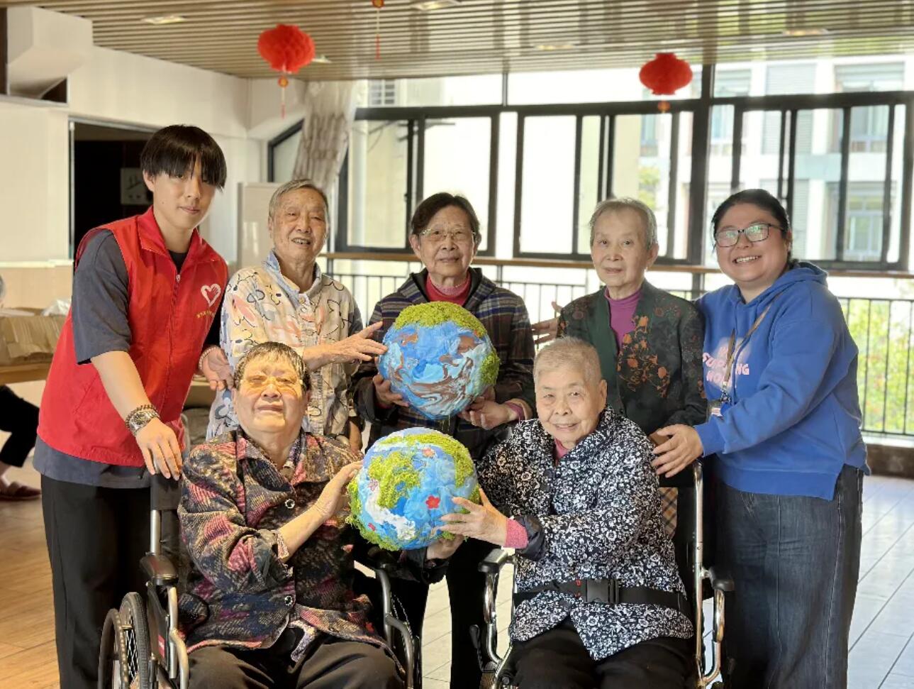 86岁的张爷爷捧着自己做的“地球”,端详了许久,低声感慨道:“这报纸啊,年轻时天天看,看国家大事,看柴米油盐。现在它能变成地球,真有意思!”一旁的李婆婆更是爱不释手,将手作“地球”举至眼前细细打量,自豪地说:“我们的家园好漂亮呀!”周围的老人纷纷点头,笑声和赞叹声此起彼伏,活动室里热热闹闹的。