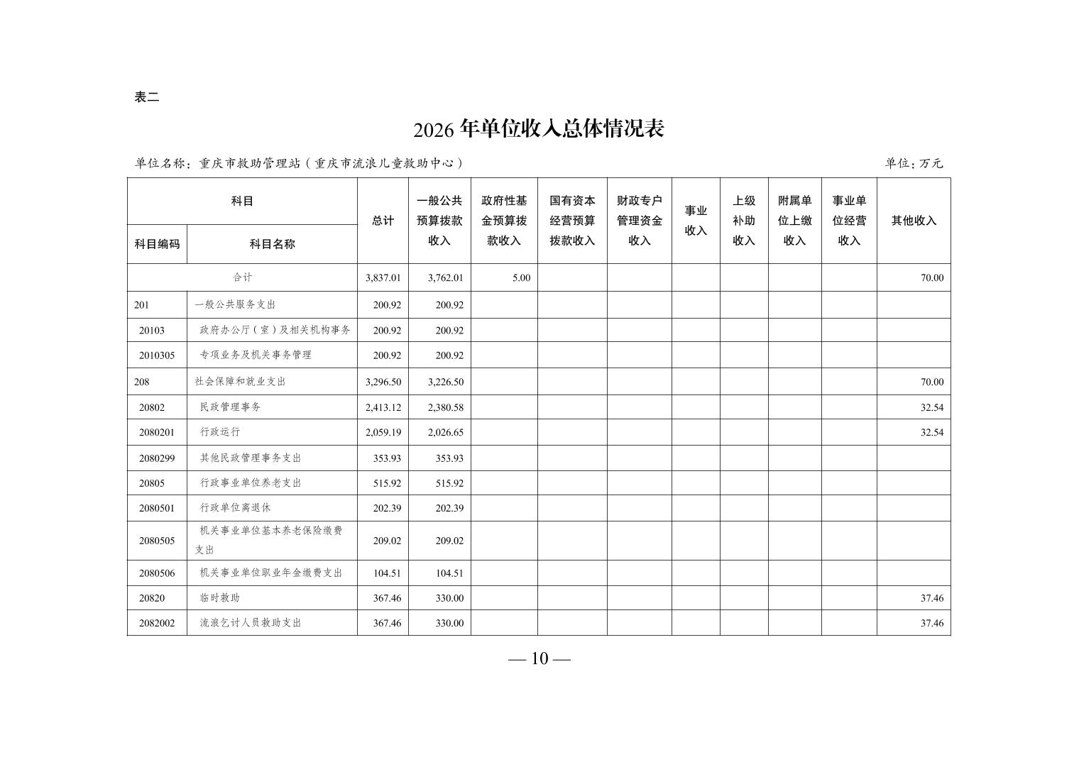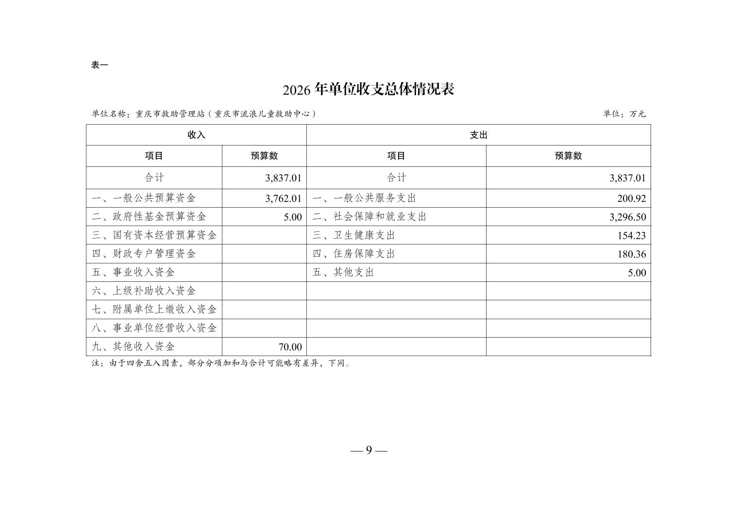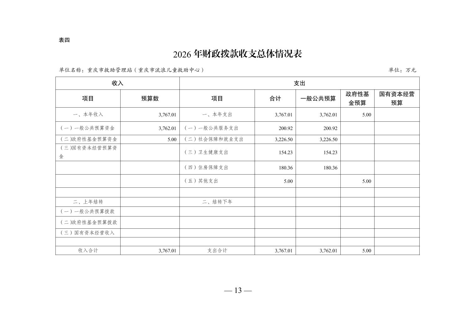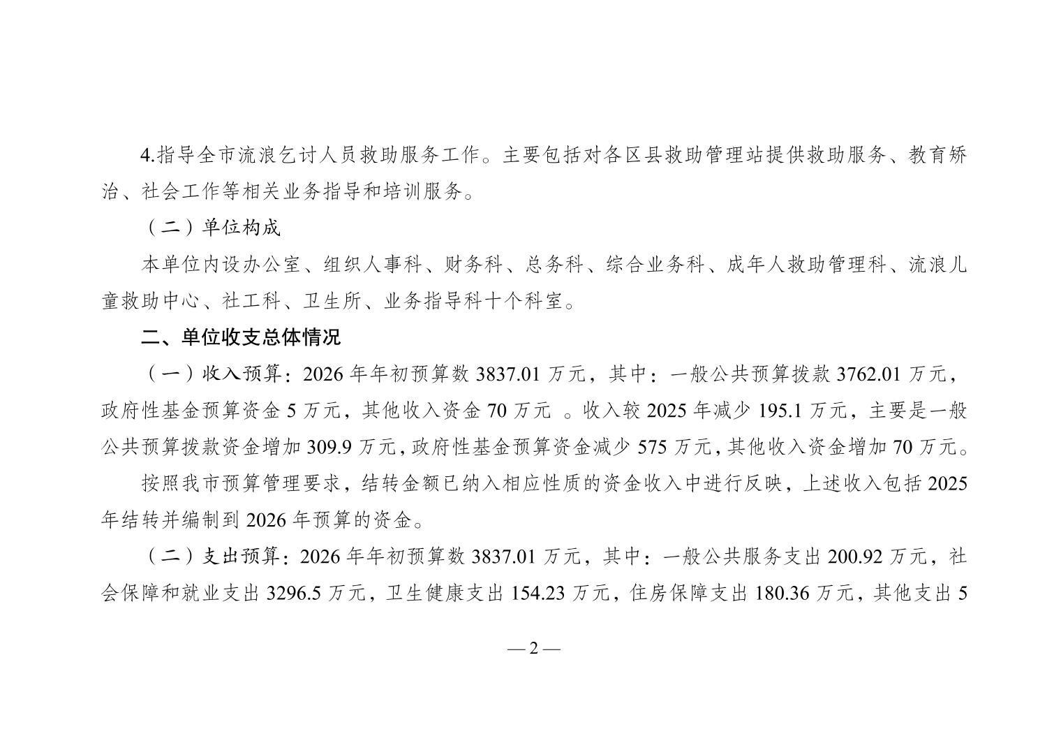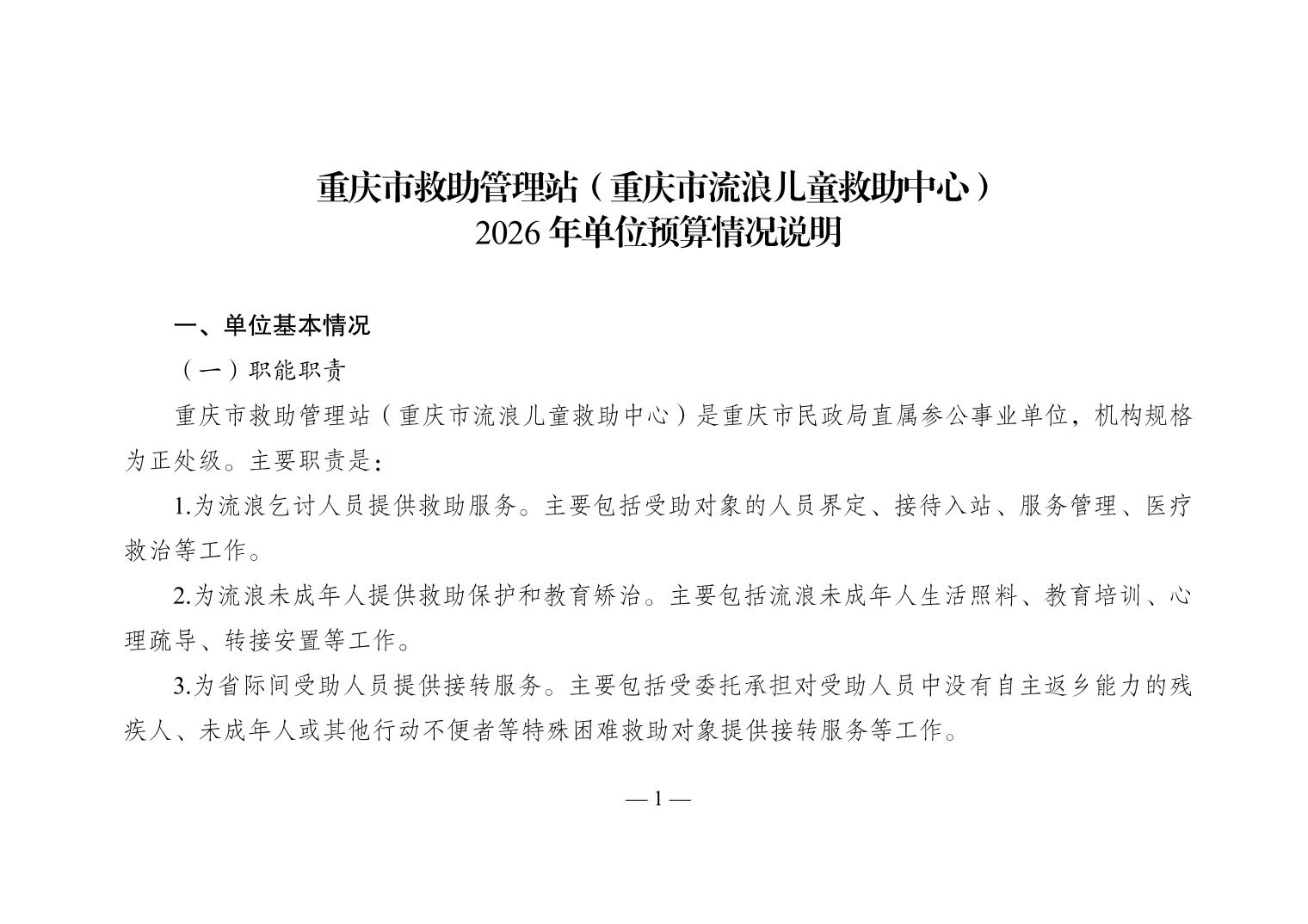 重庆市救助管理站(重庆市流浪儿童救助中心)2026年单位预算情况说明