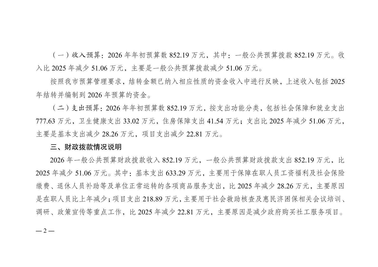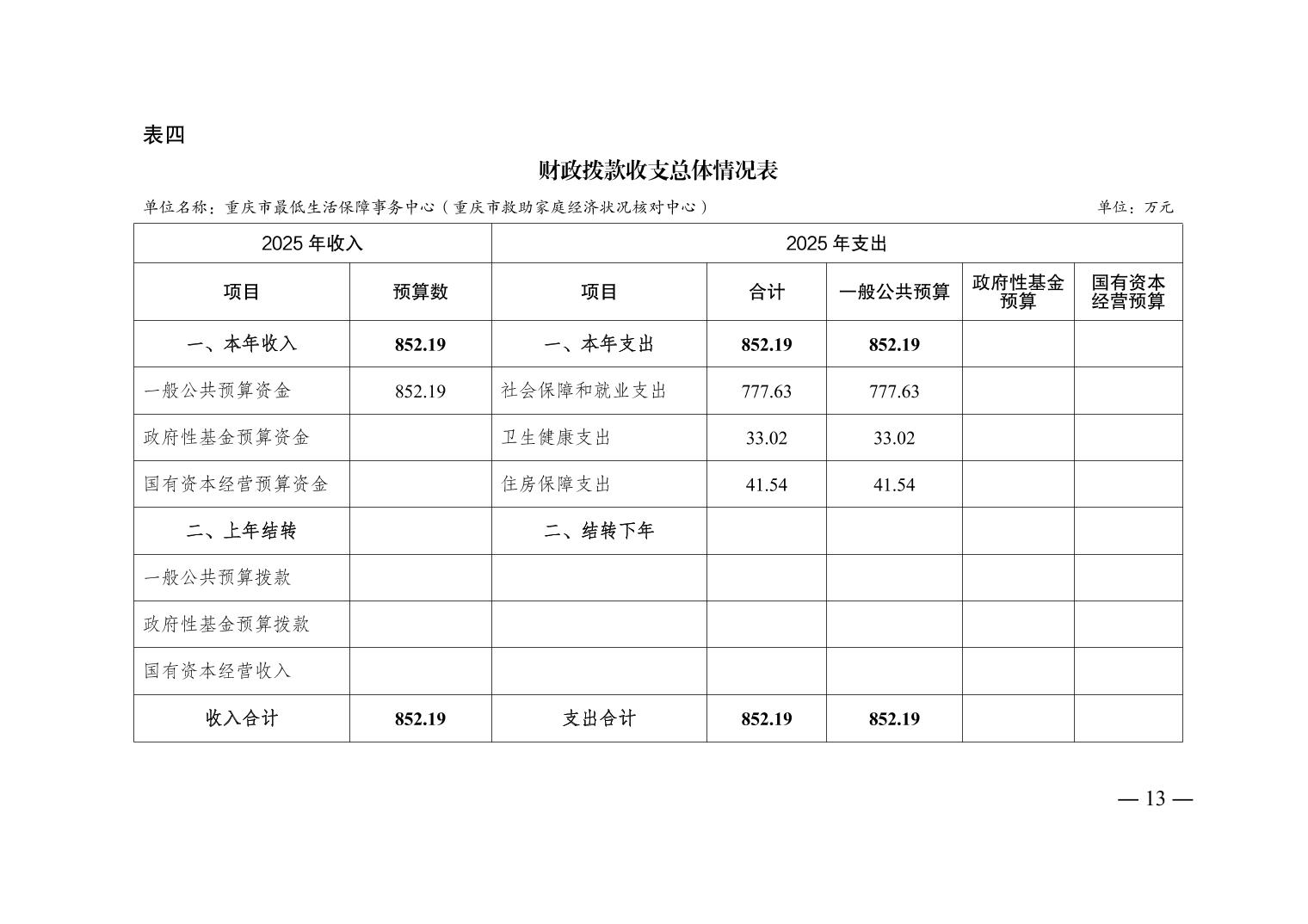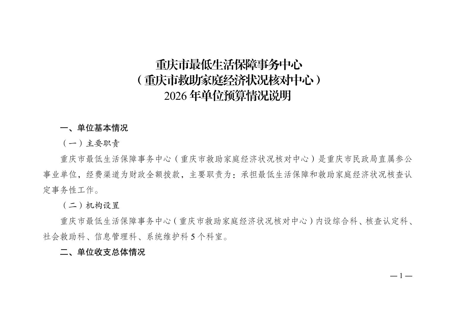 重庆市最低生活保障事务中心(重庆市救助家庭经济状况核对中心)2026年单位预算情况说明