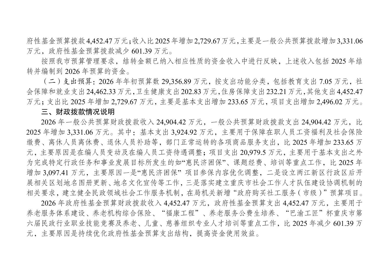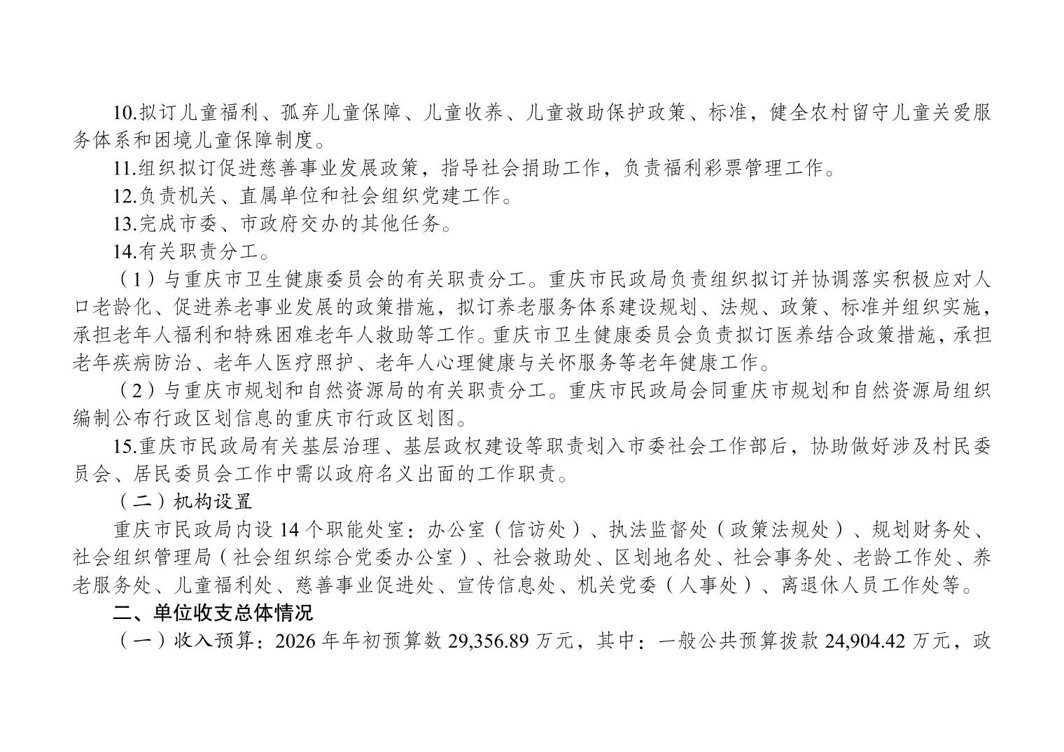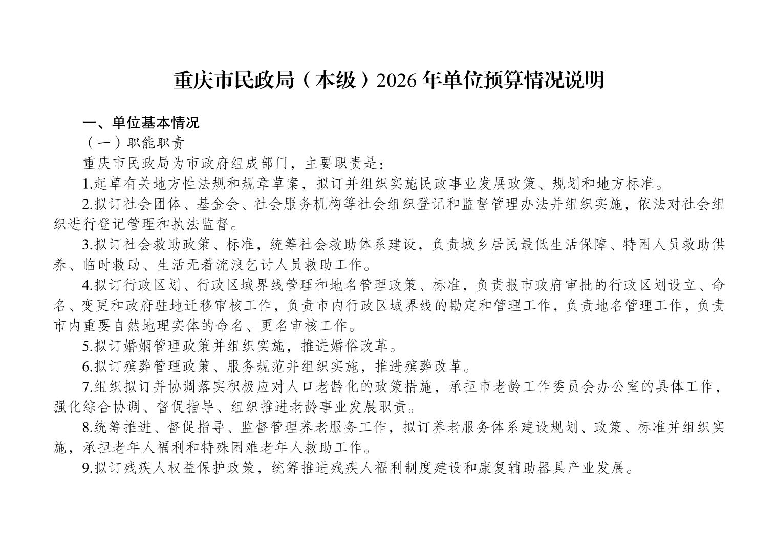 重庆市民政局(本级)2026年单位预算情况说明