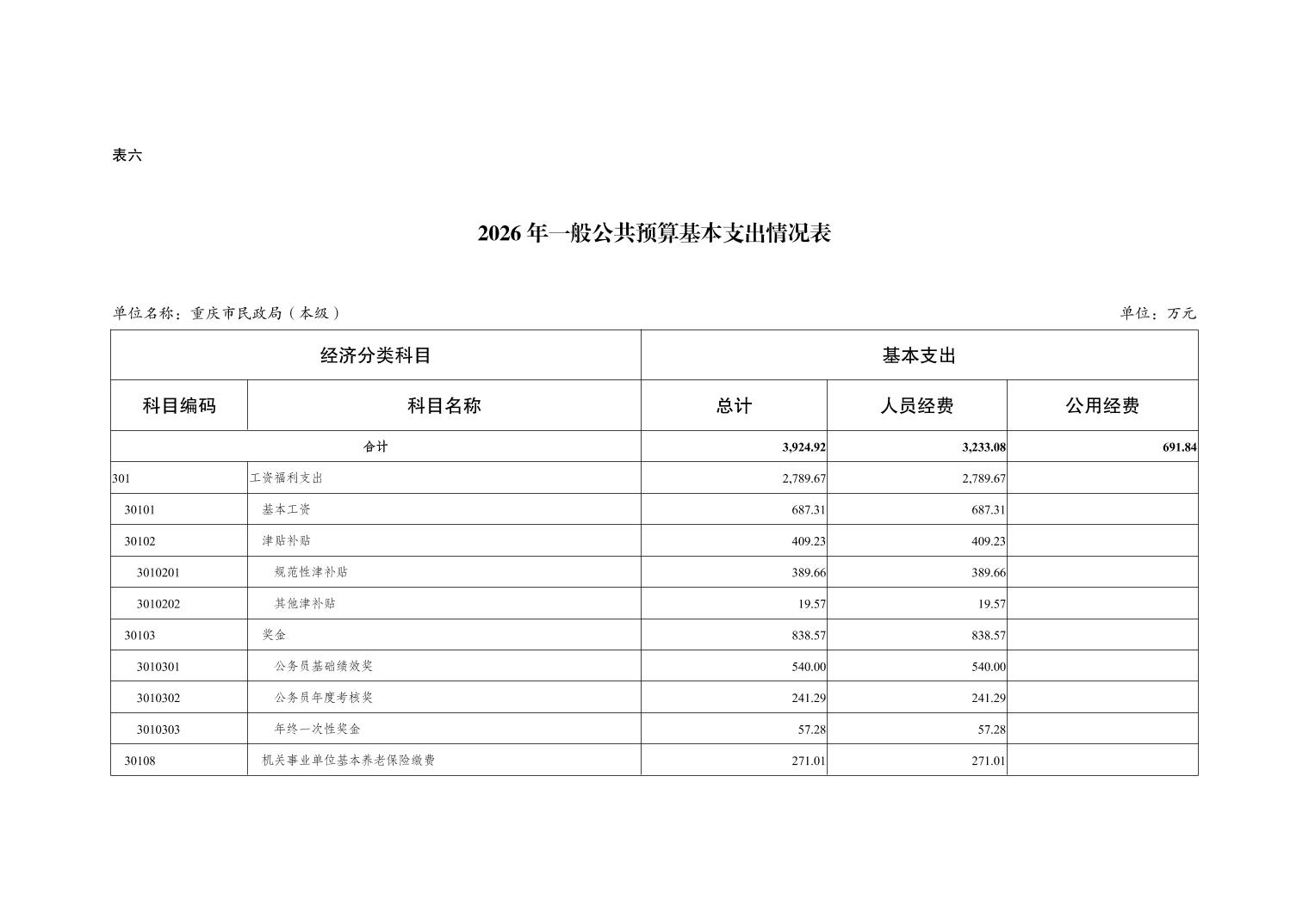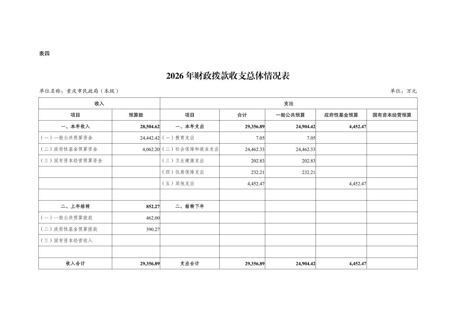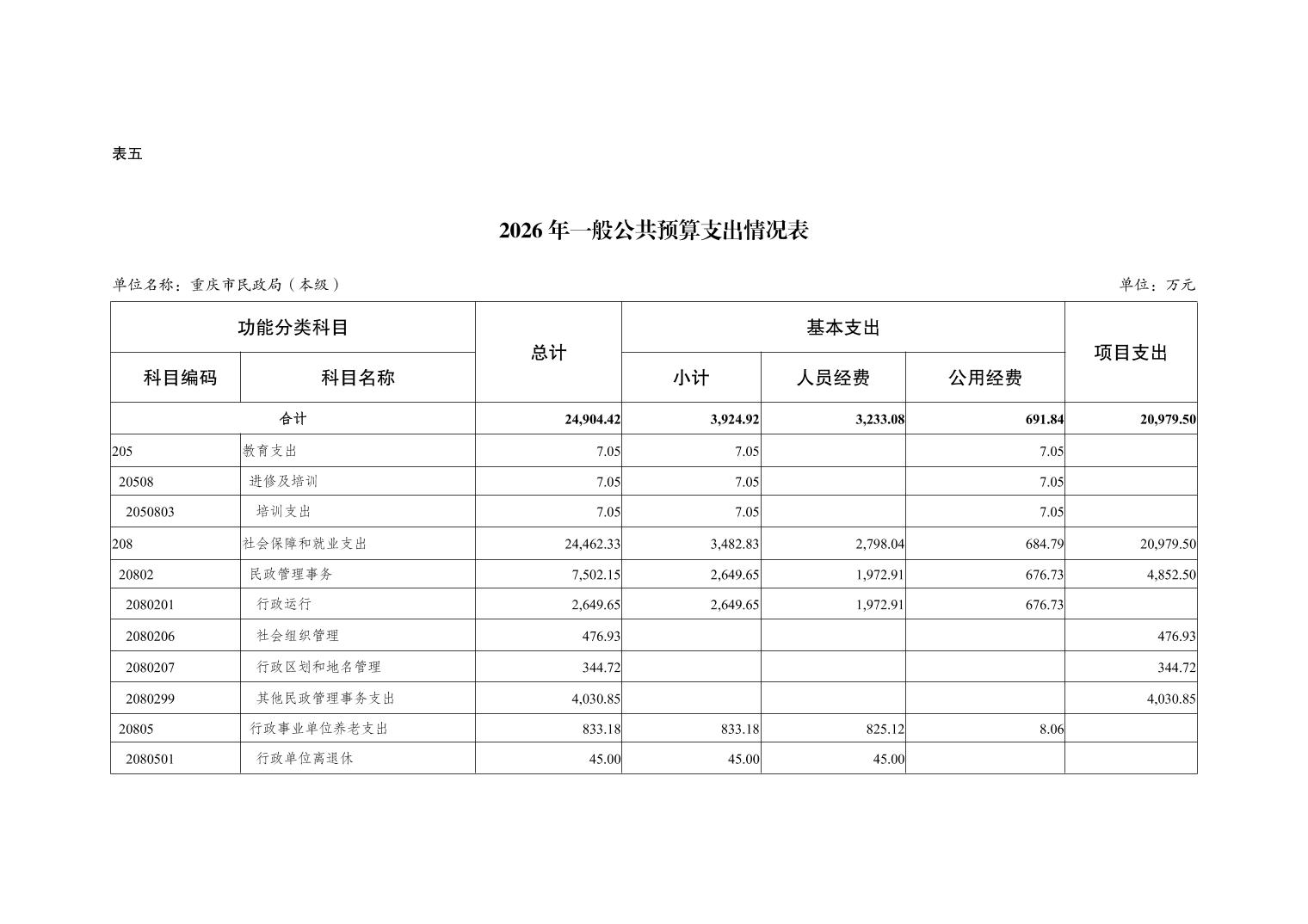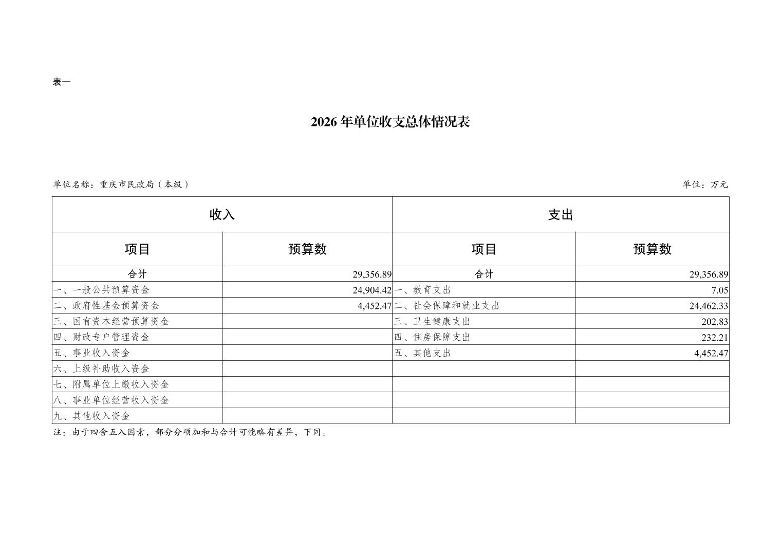 重庆市民政局(本级)2026年单位预算情况说明