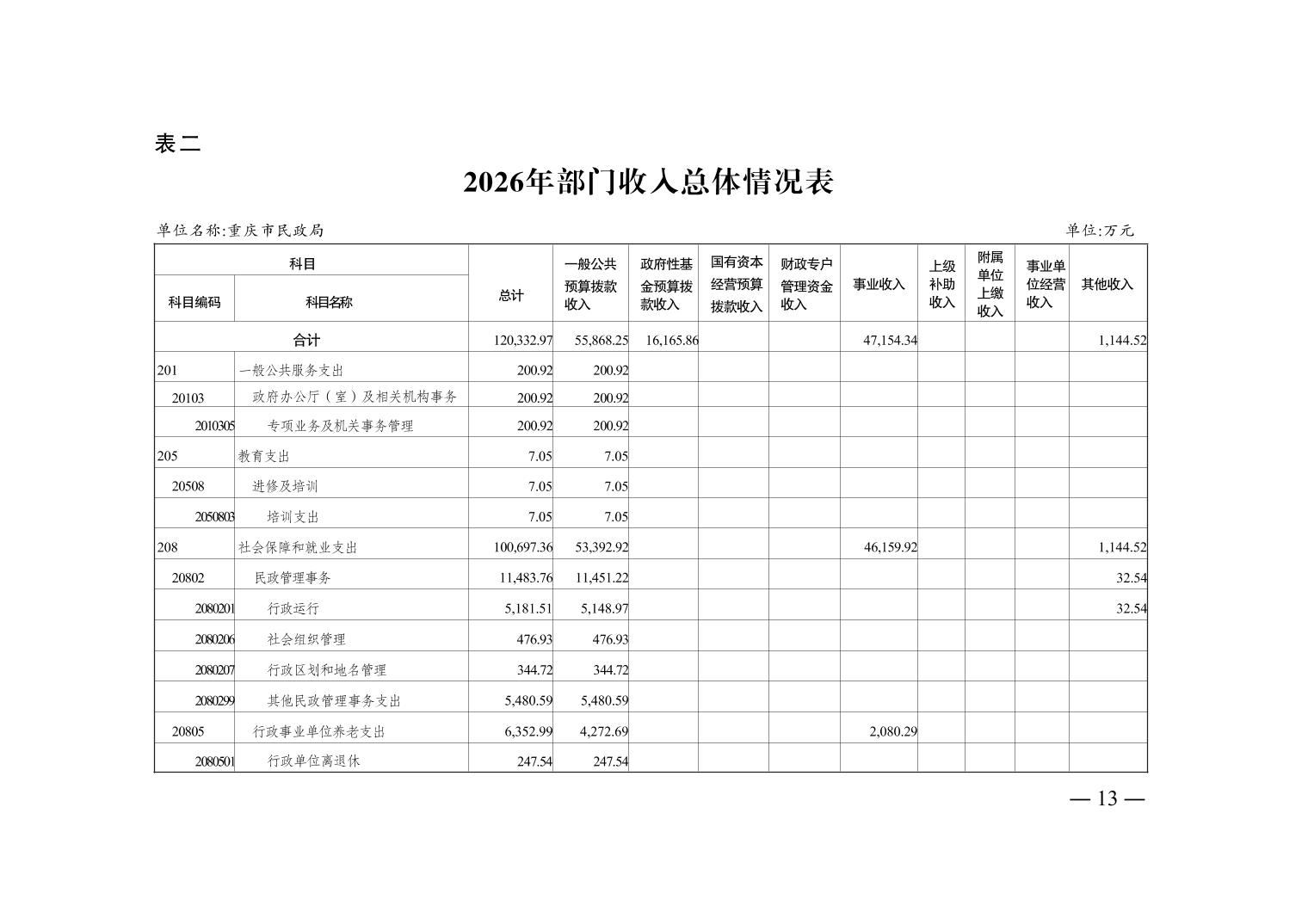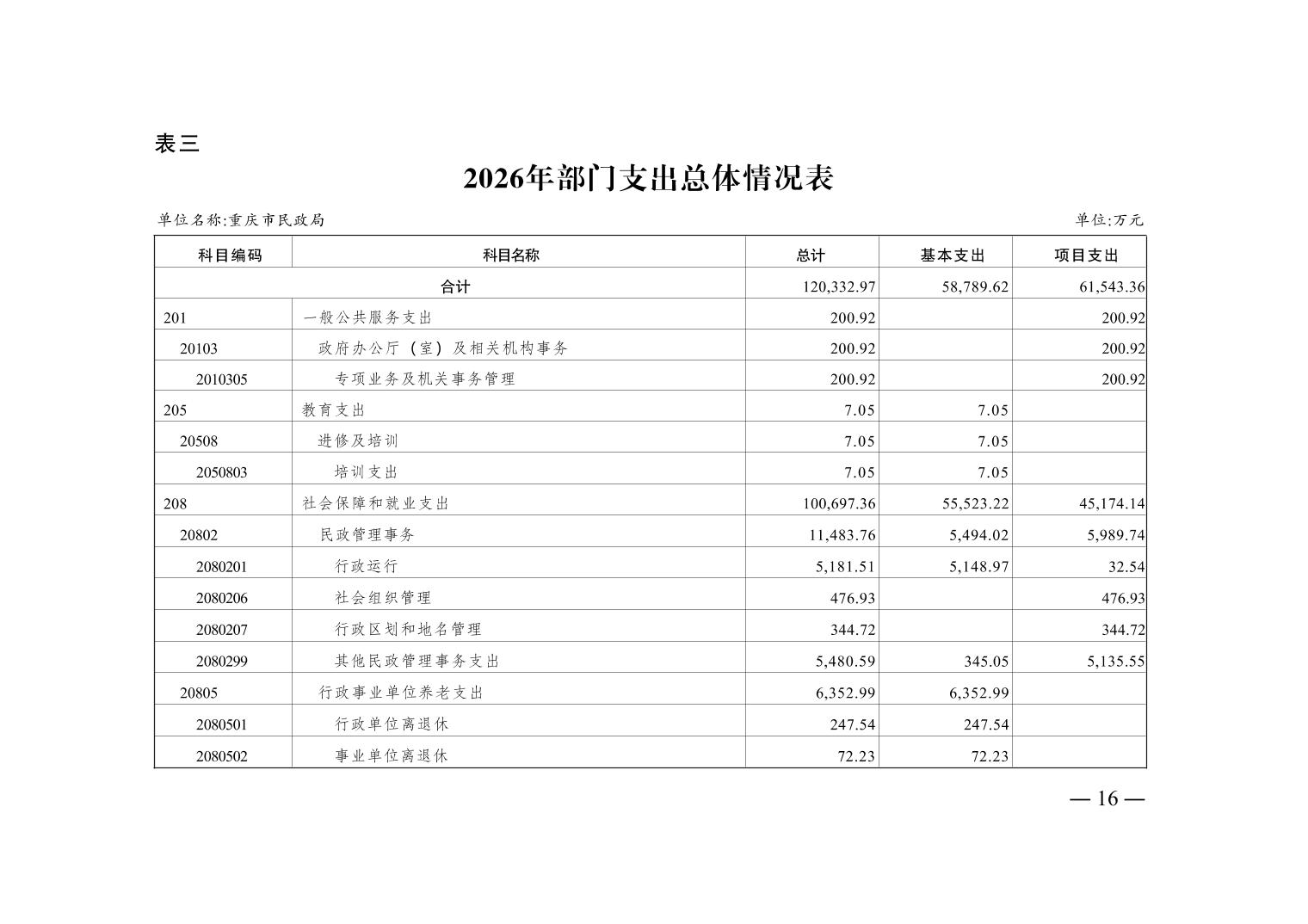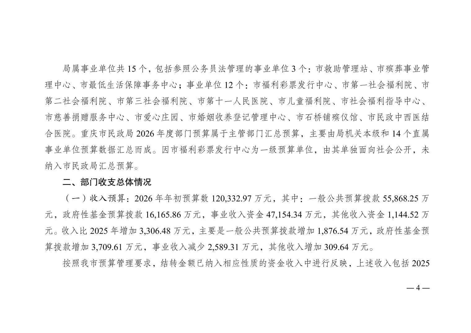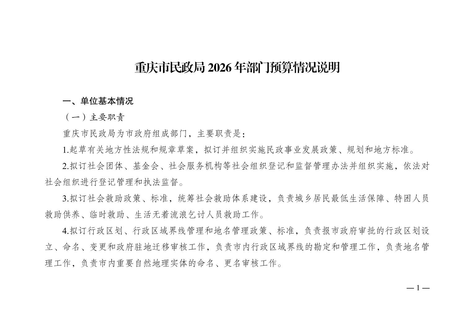 重庆市民政局2026年部门预算情况说明