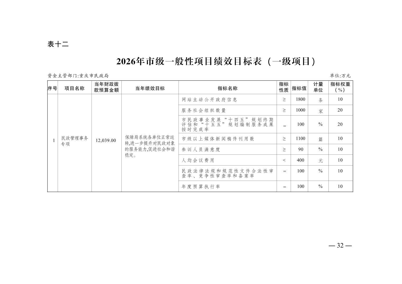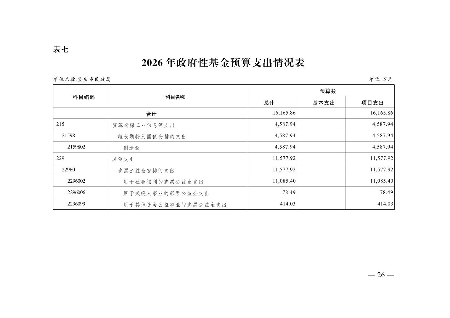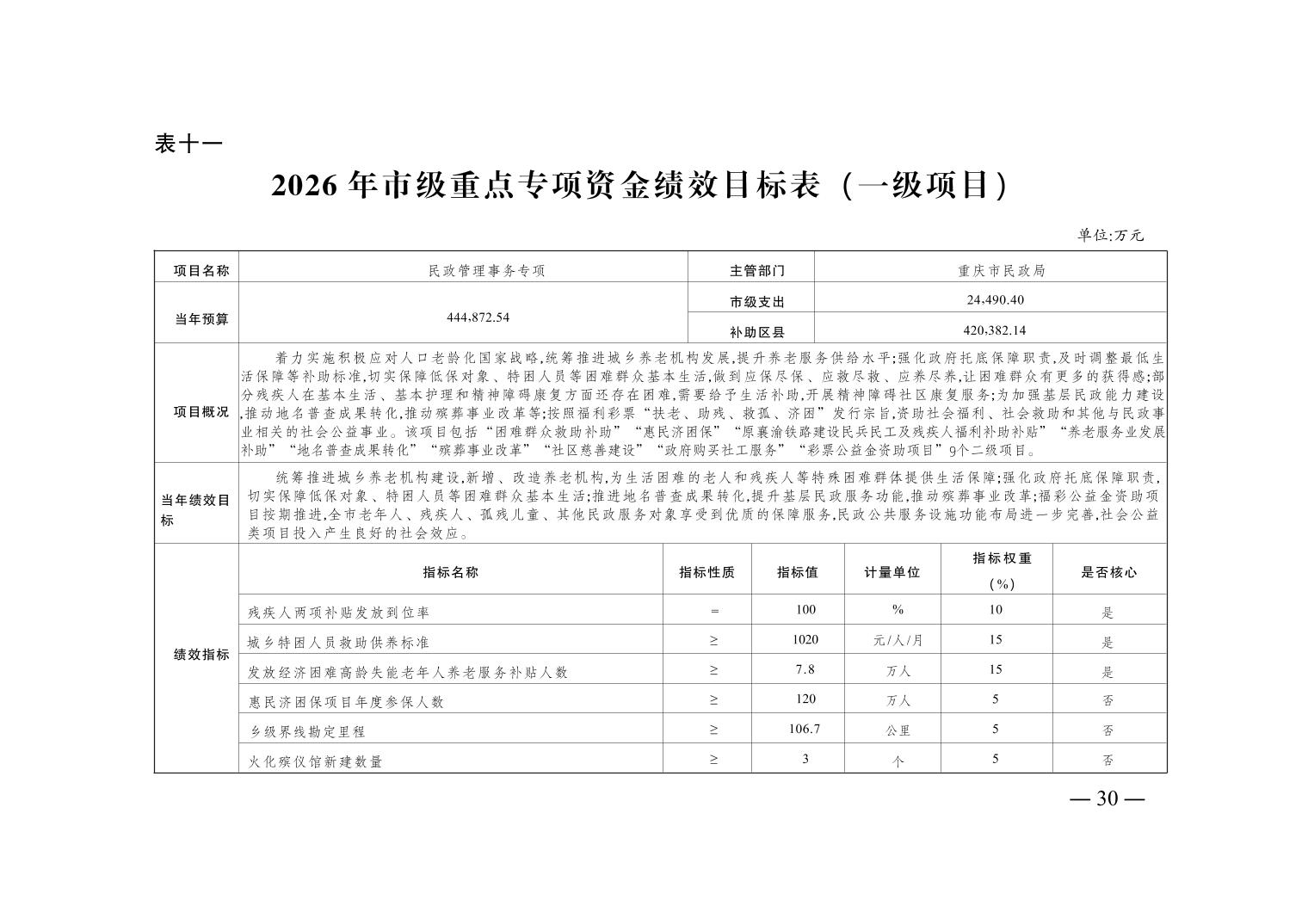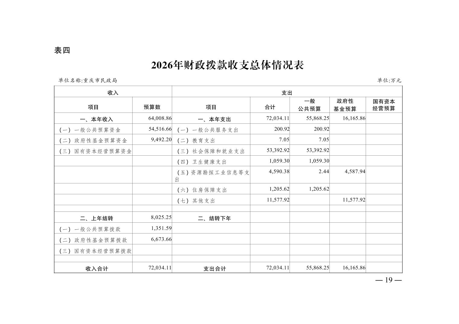 重庆市民政局2026年部门预算情况说明