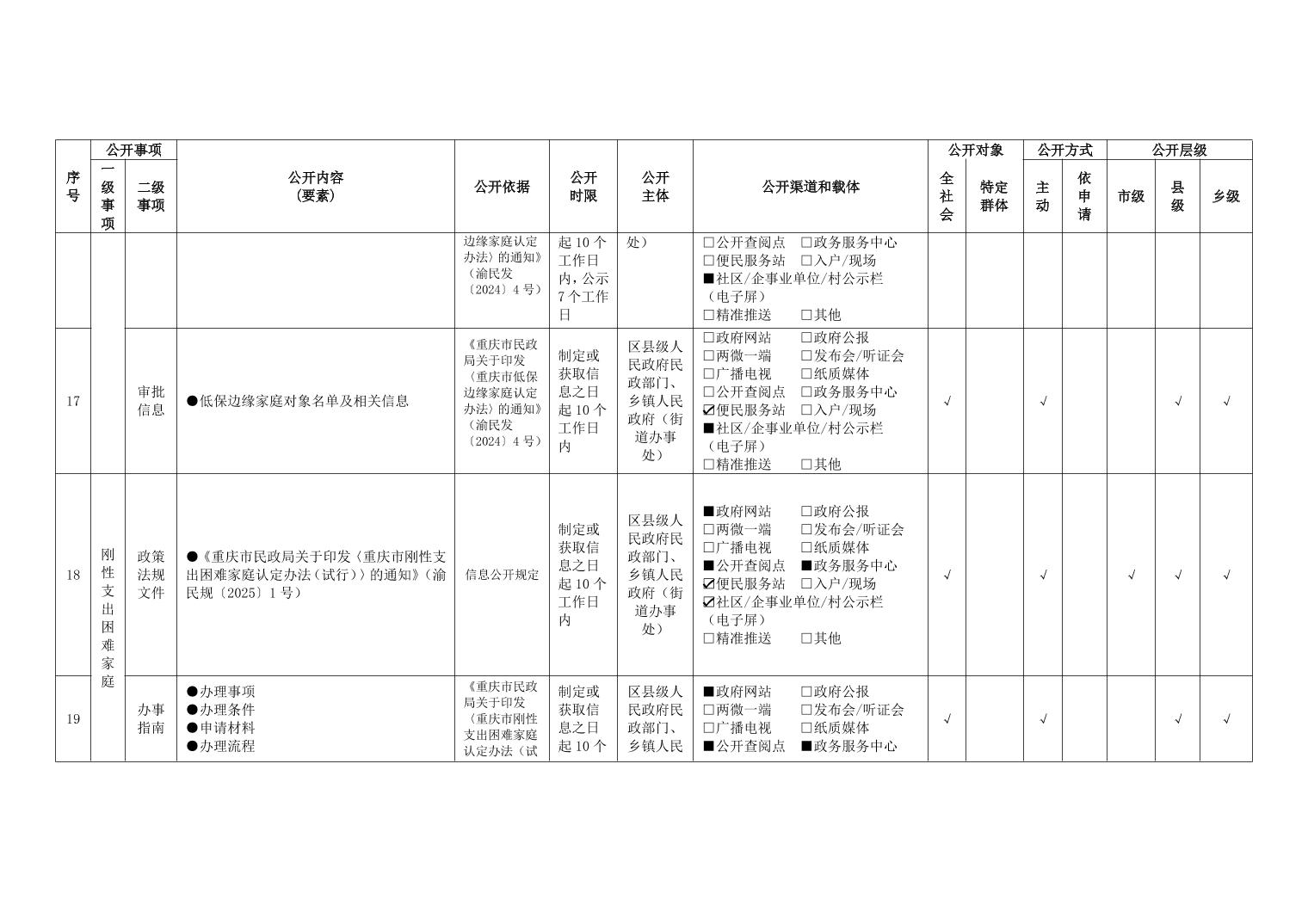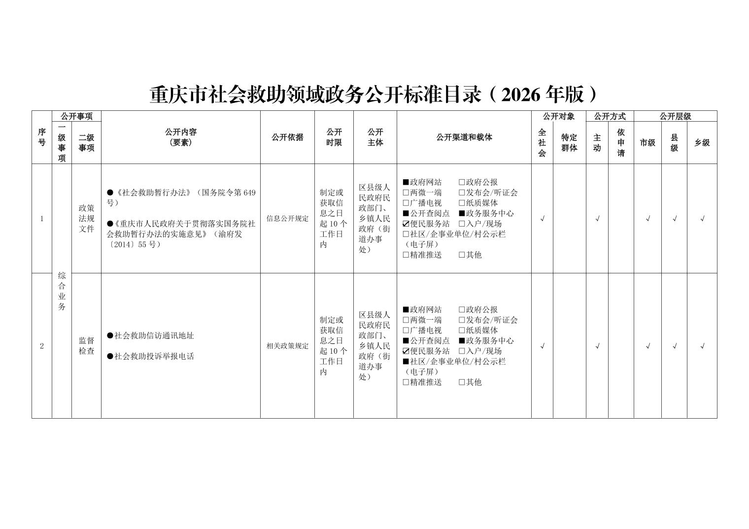 重庆市社会救助领域政务公开标准目录(2026年版)