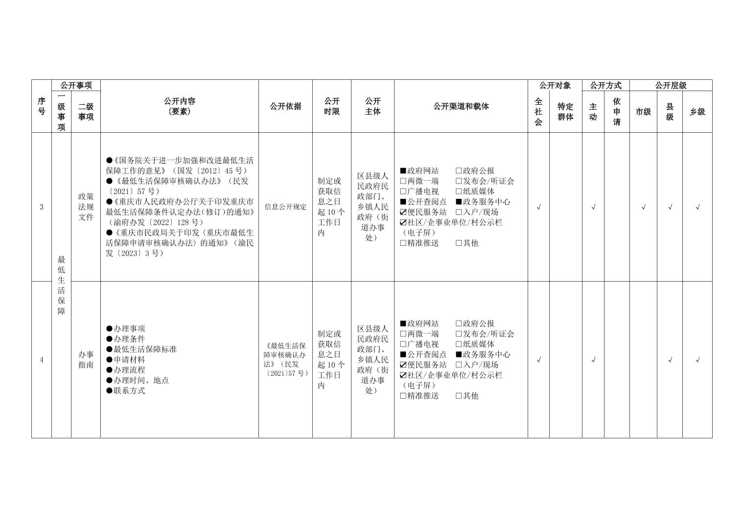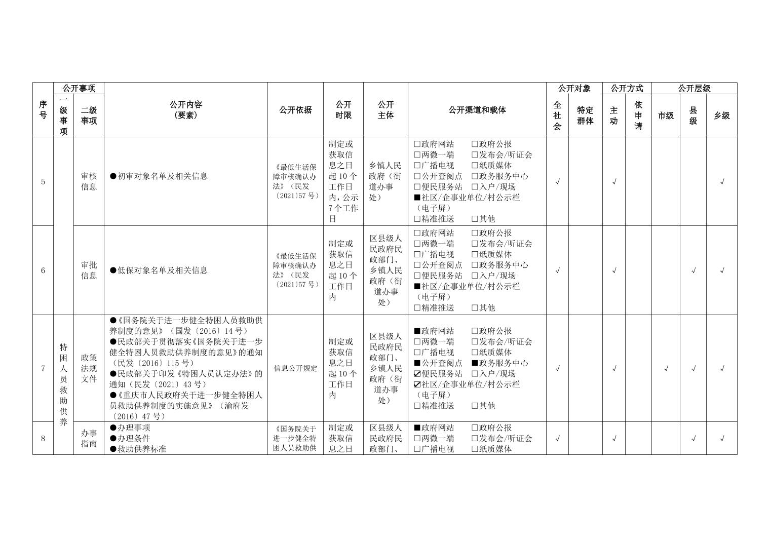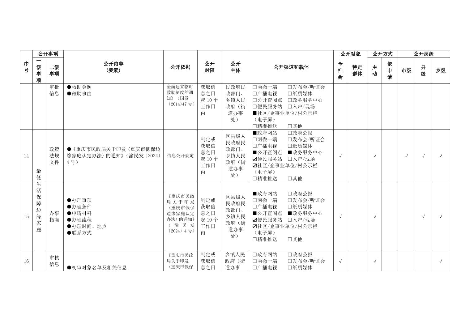 重庆市社会救助领域政务公开标准目录(2026年版).doc
