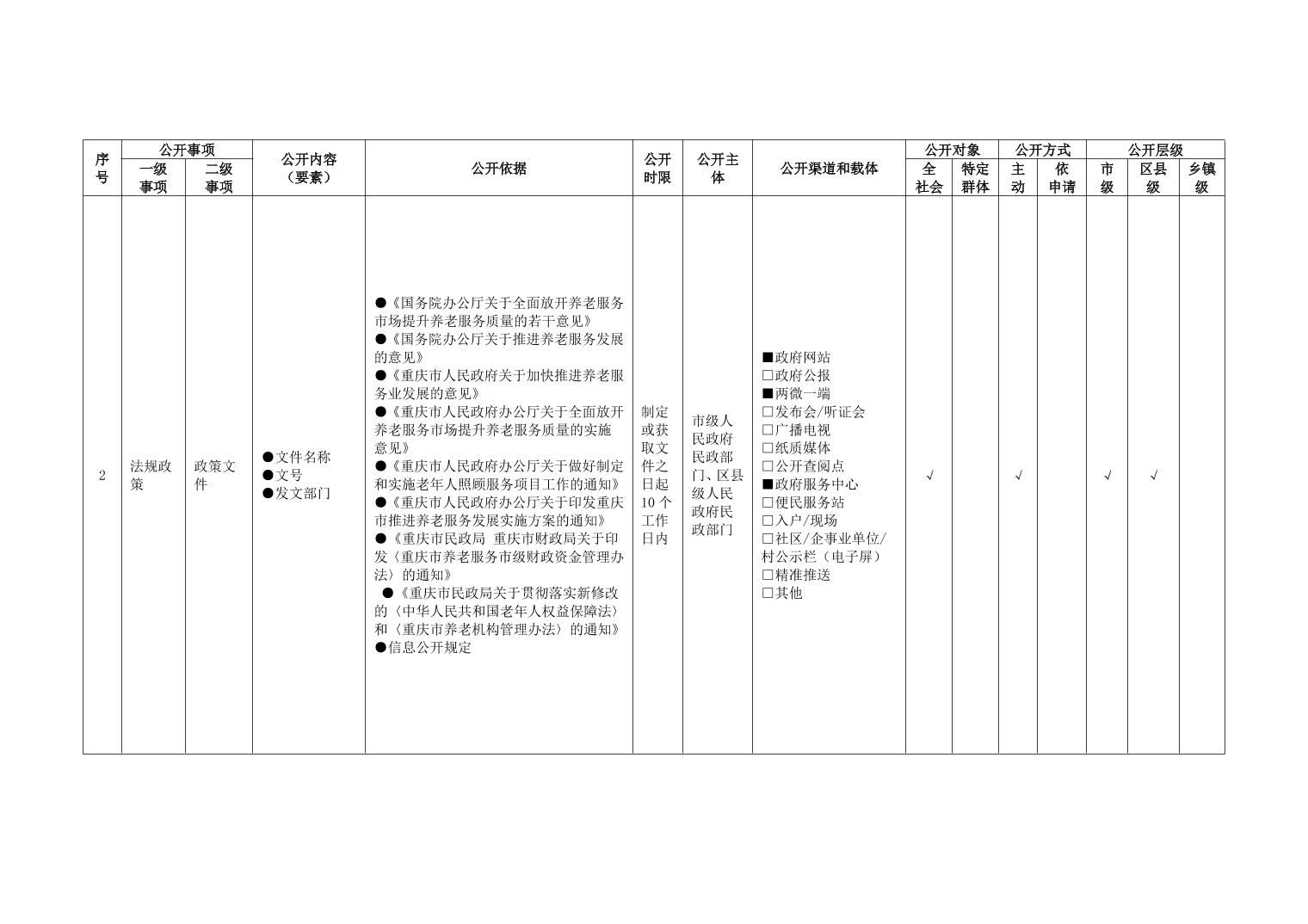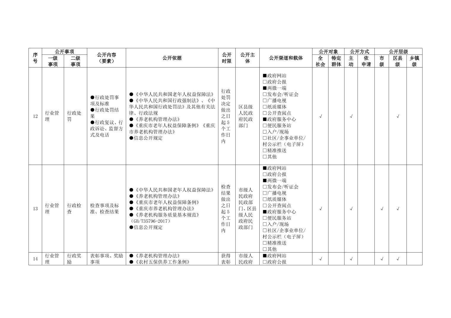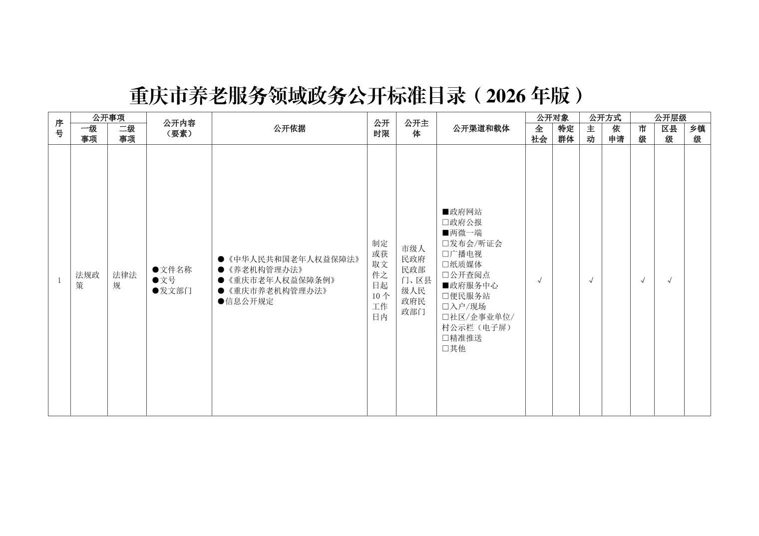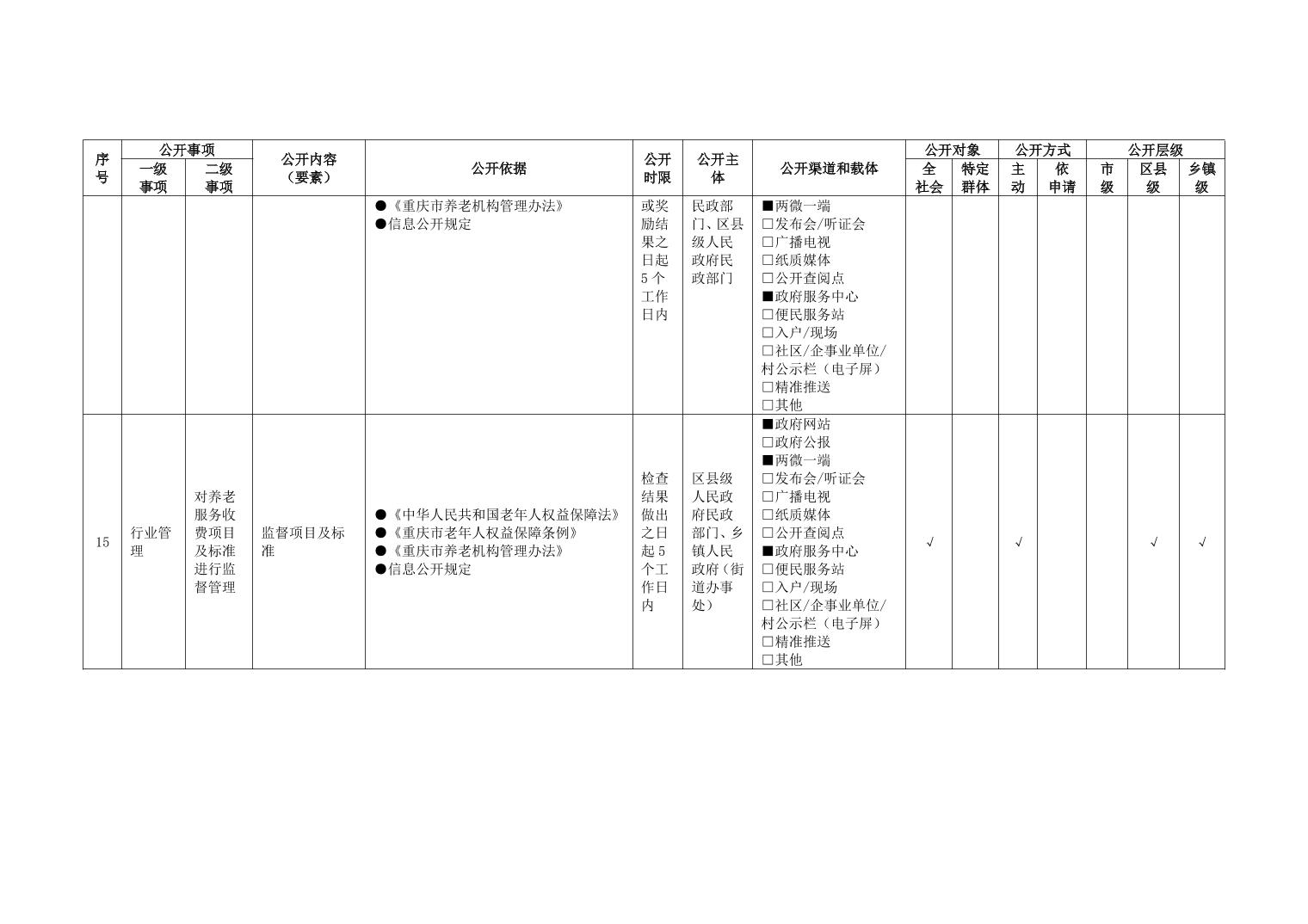 重庆市养老服务领域政务公开标准指引(2026年版)