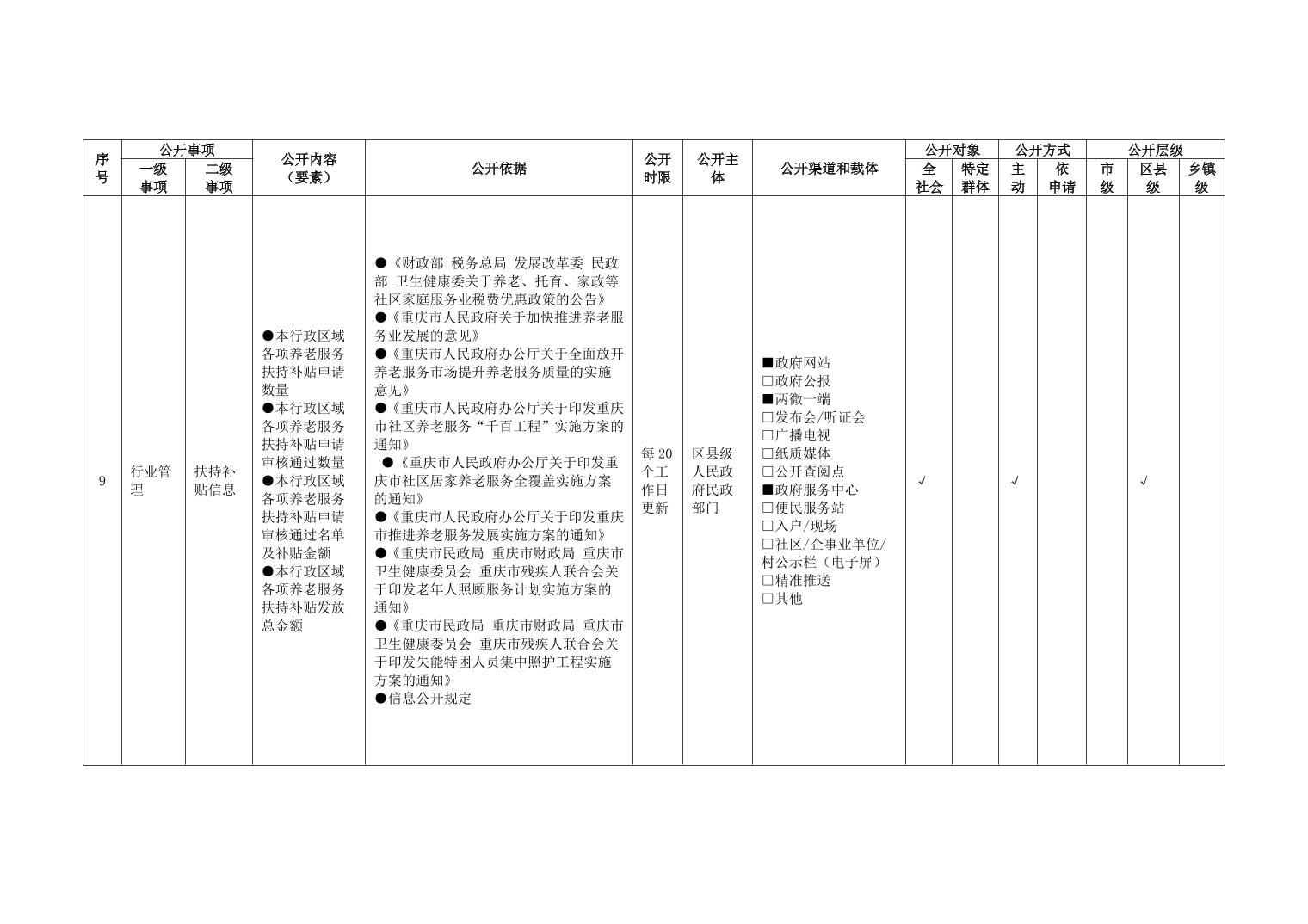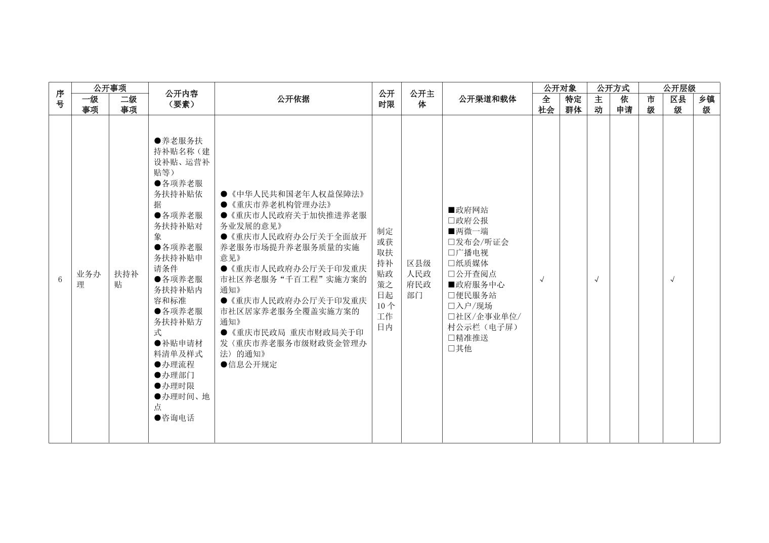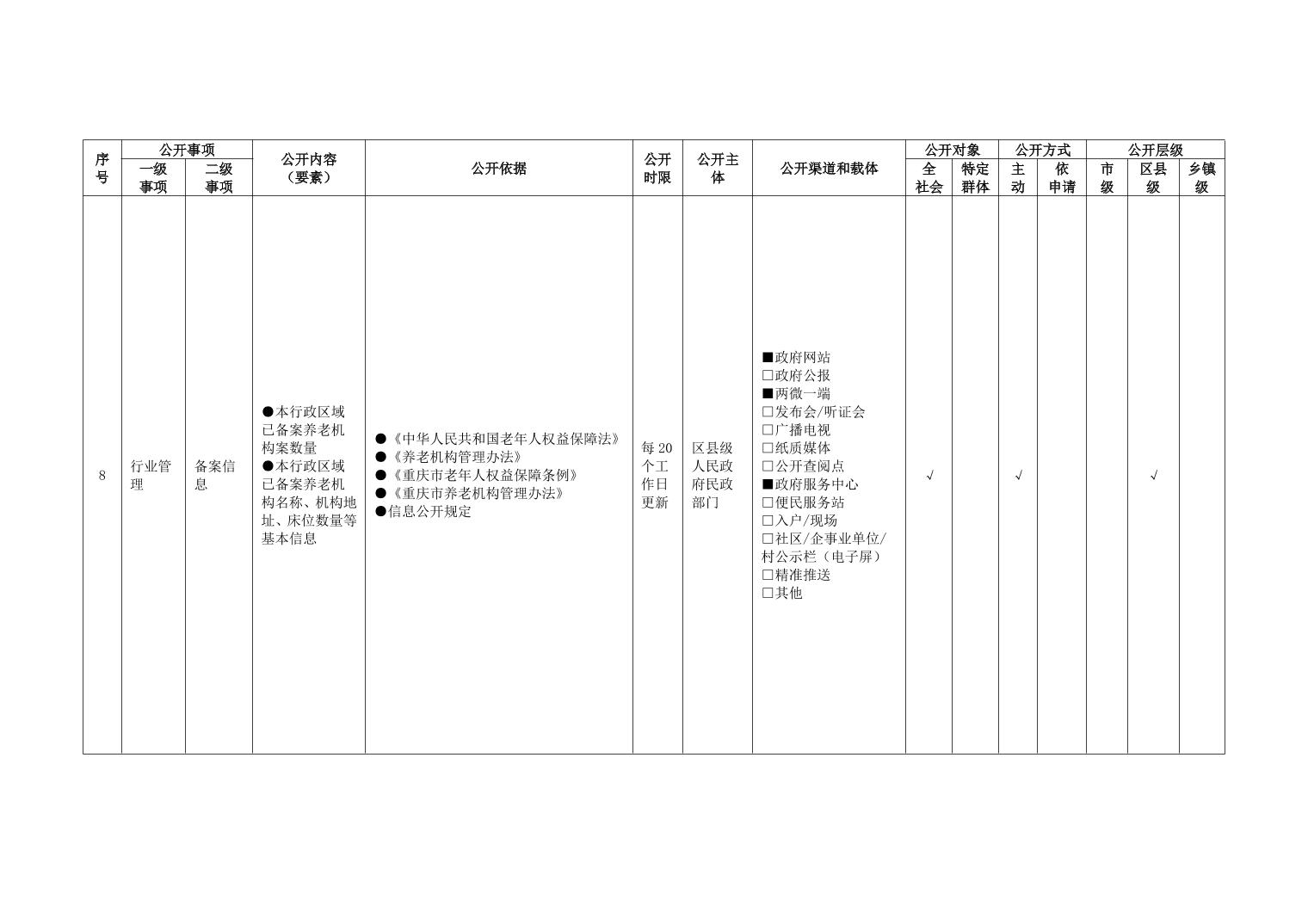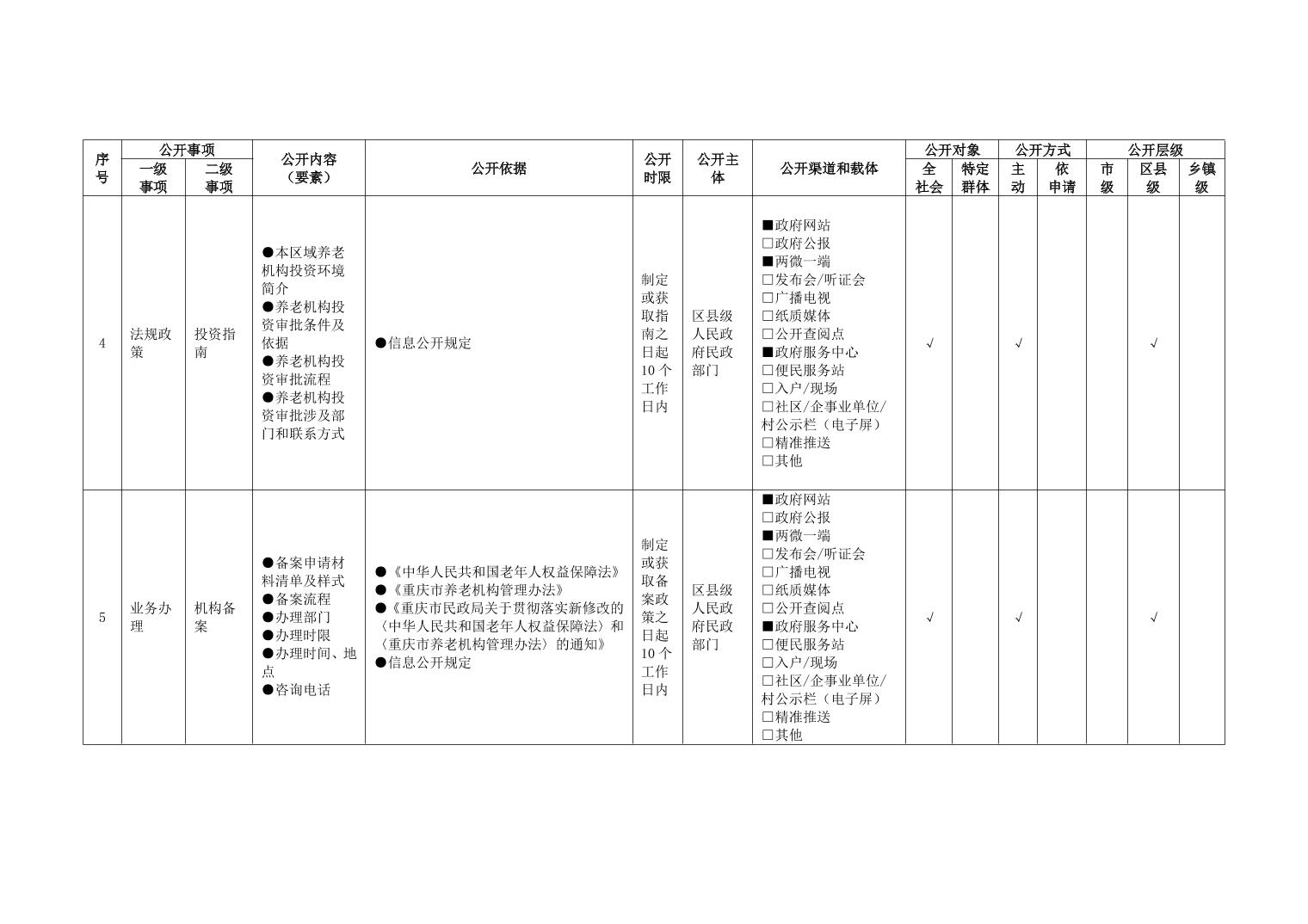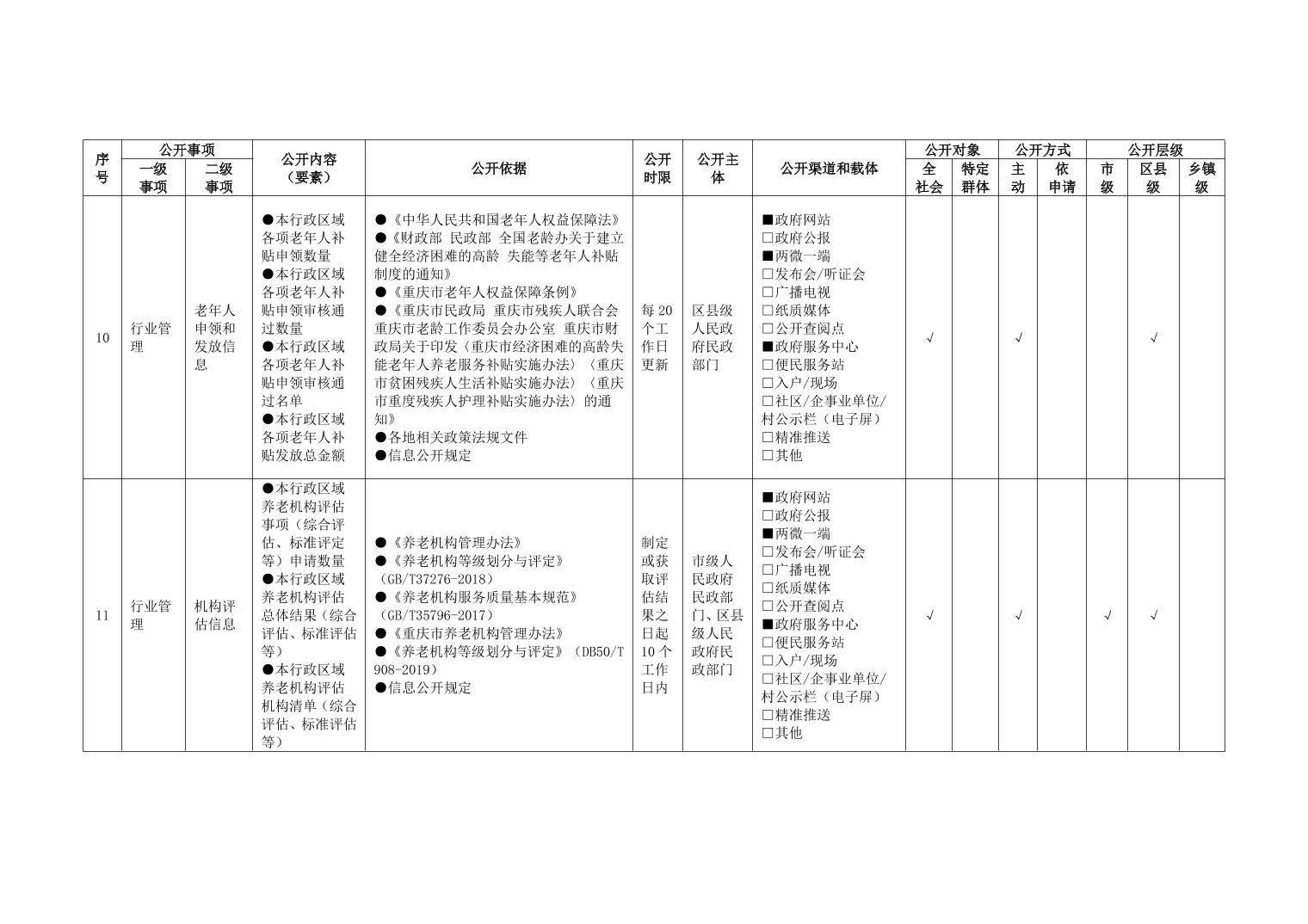 重庆市养老服务领域政务公开标准指引(2026年版)