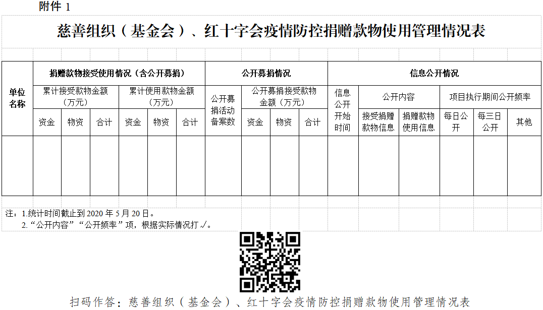 附件:1. 慈善组织(基金会)、红十字会疫情防控捐赠款物使用管理情况表