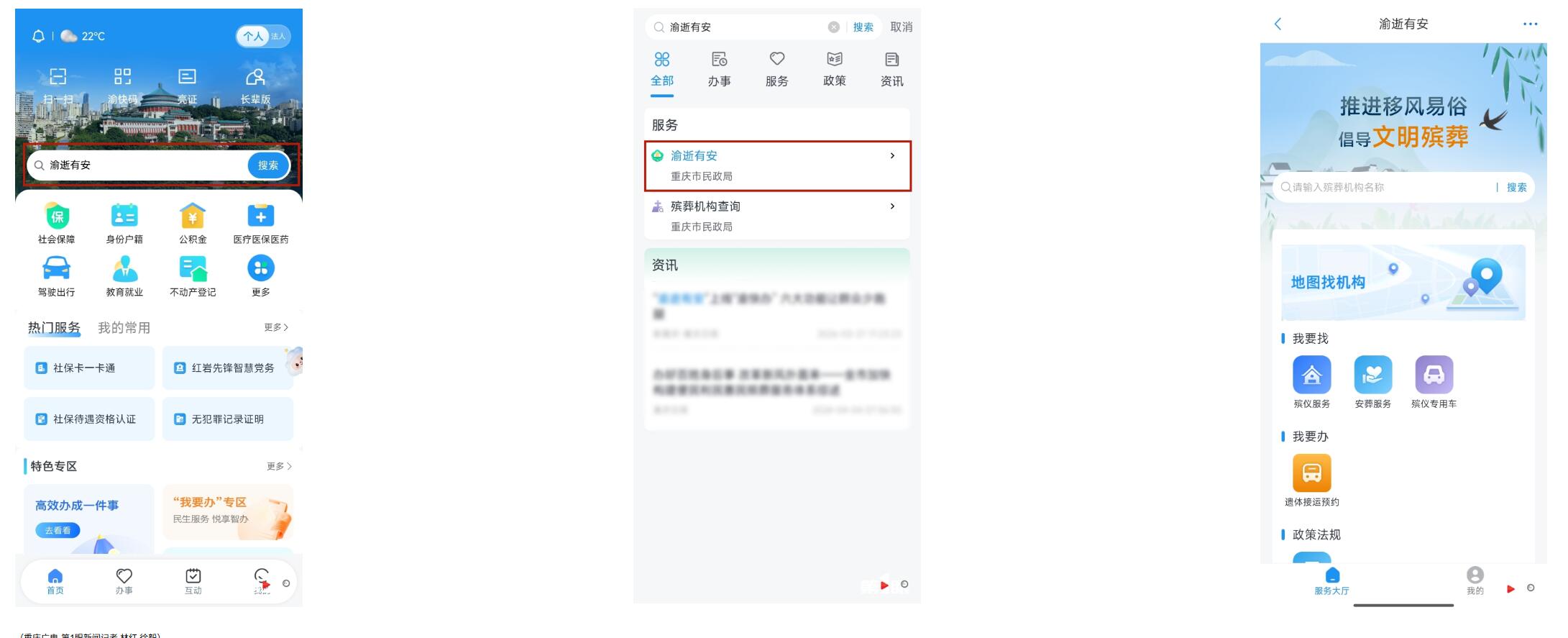 “渝快办”→“渝逝有安”专区