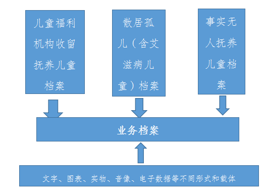 一是明确业务档案内容。涵盖儿童福利机构收留抚养儿童,以及散居孤儿(含艾滋病儿童)、事实无人抚养儿童在申报确认和其它保障工作中形成的具有保存价值的文字、图表、实物、音像、电子数据等不同形式和载体的历史记录。
